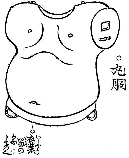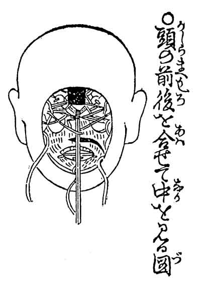 人形全体之図 頭の前後を合わせて中を見る図 下駄 咽首 釣片 引栓