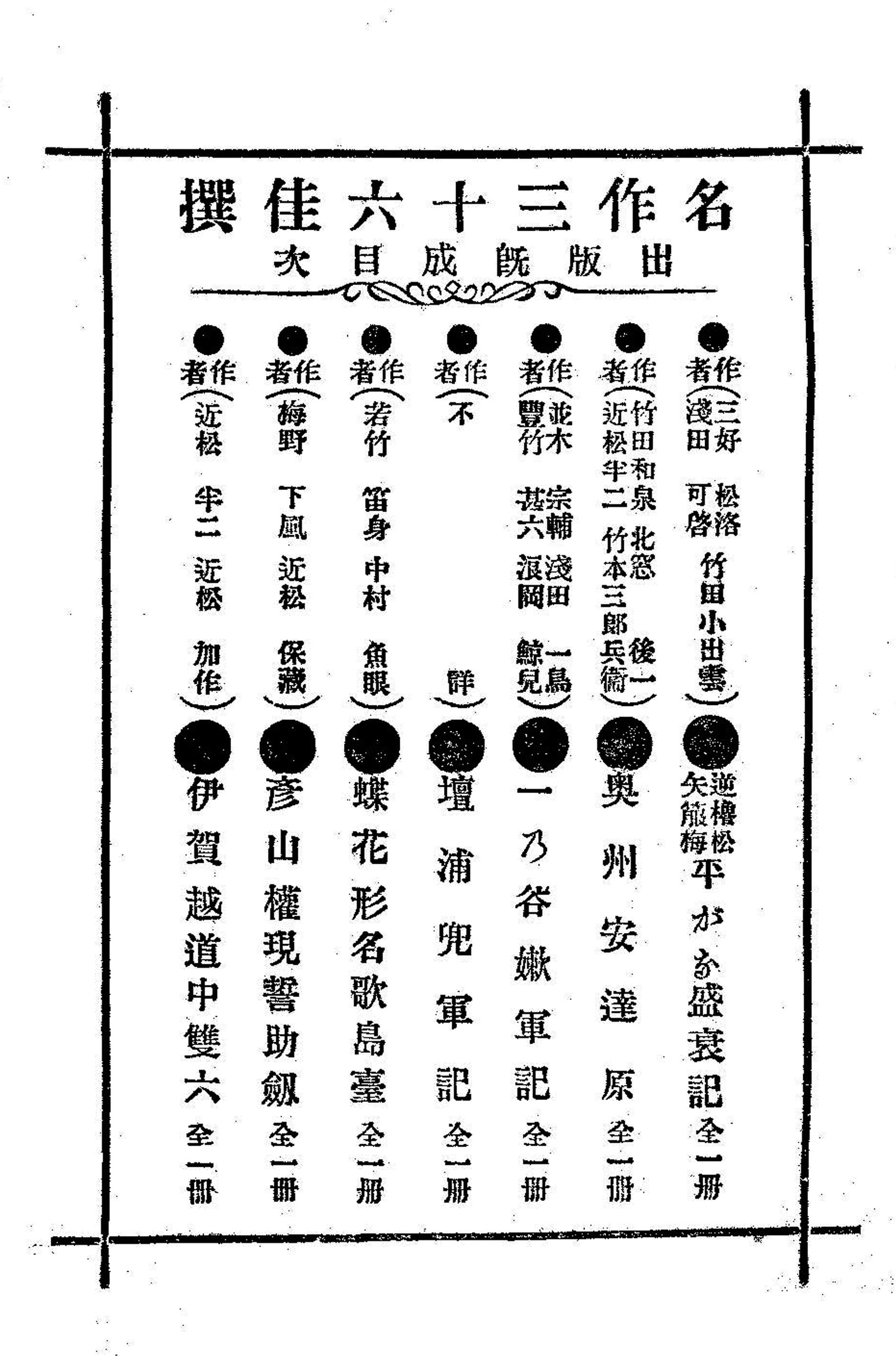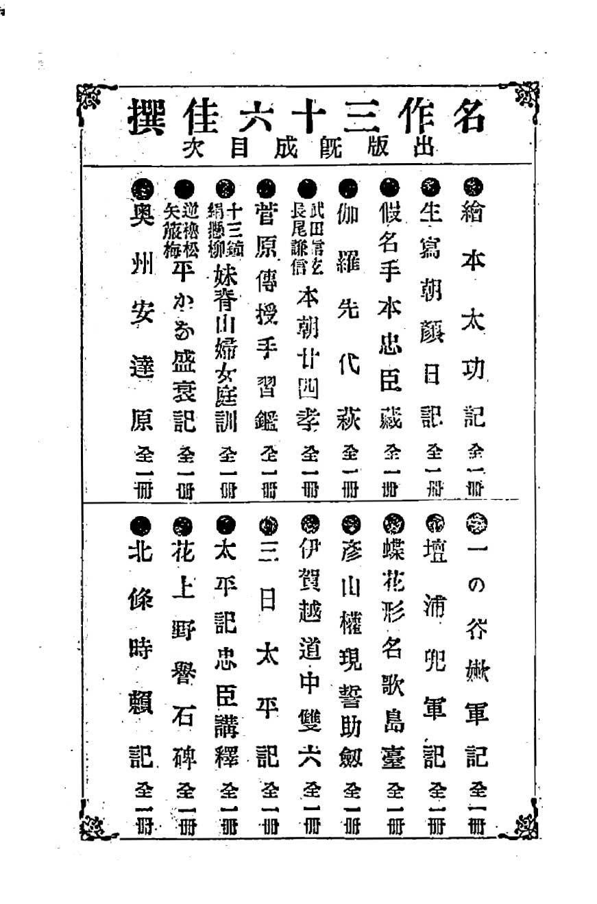 【 表6 名作三十六佳撰 裏表紙意匠・広告一覧 】