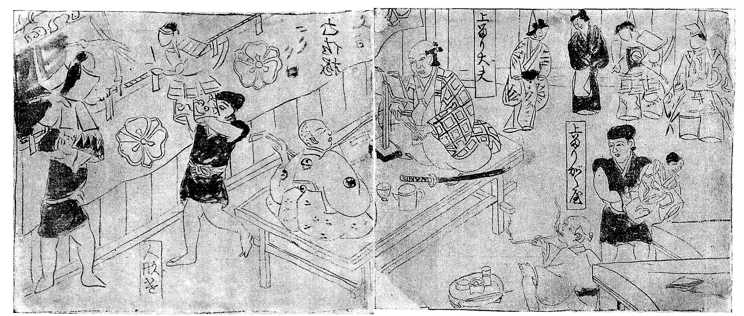 元禄の頃は淀川の船へ都のすはひ女小舟に棹さし来り小間もの画草紙の類を商ひしと見えて宇治加賀掾の院本雁金文七といふものに清川の道行のぼり船の文中に