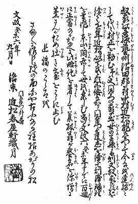 文政癸未六年九月日 洛東 門左衛門 外裔 近松春屋軒繊月】