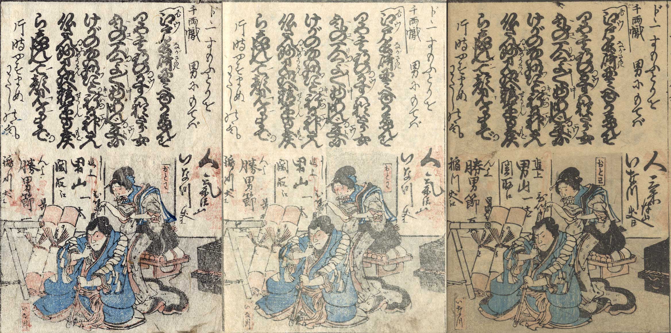 ![]() | 2丁オモテ 【佐】【竹】 全体の構図、お俊は類似しているが、人物が増えている |