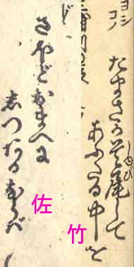 2丁ウラ 左から 【佐】、【竹初】、【竹】 |