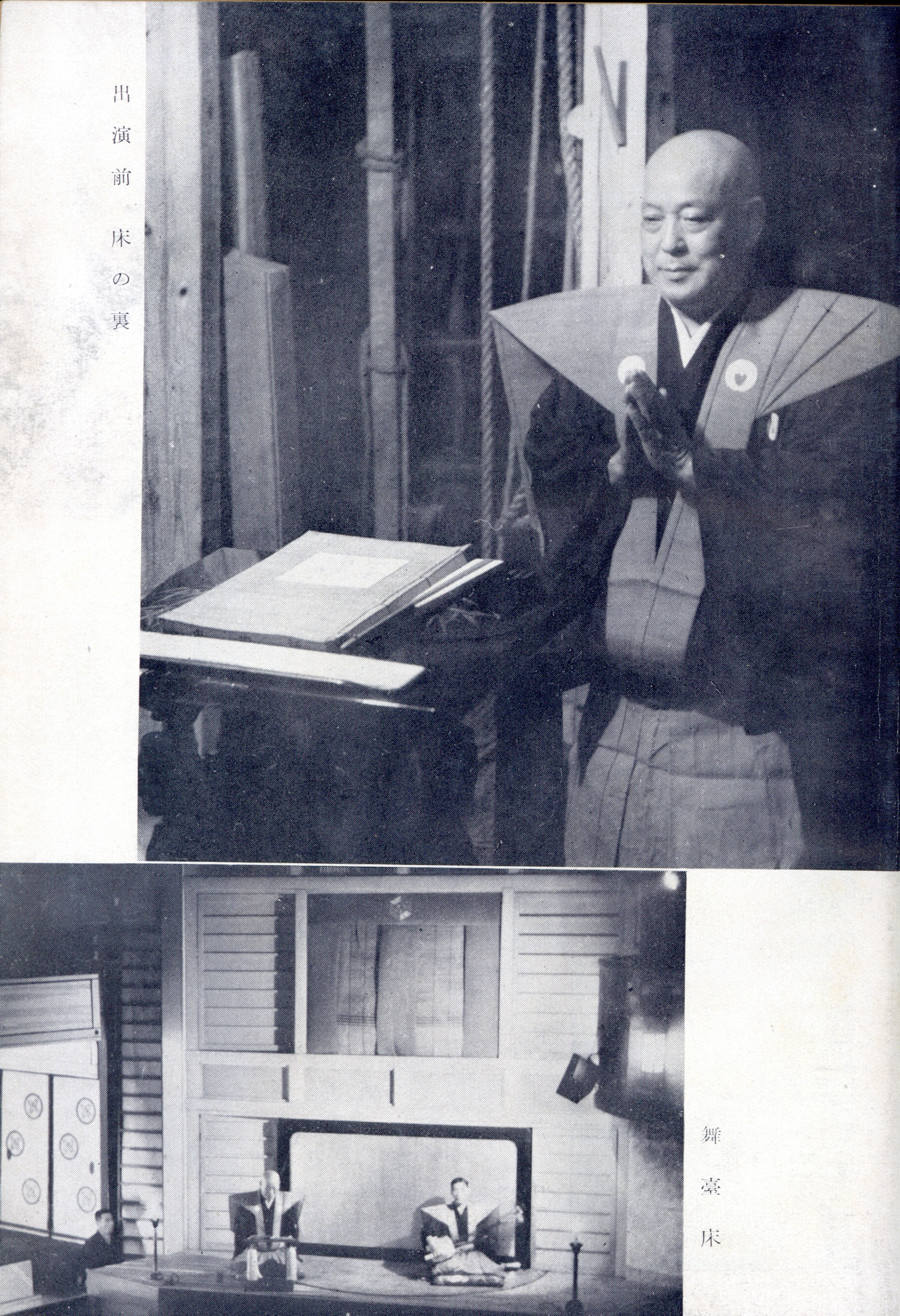 --床がグルリと廻はつてきまると、見台を右へ片寄せ、扇子を前に置き、やゝあとずさりして床に手を突いて、巨躯を納まりよく平伏する裃の姿の、他と掛け離れた輪廓の大きさ。それだけで場を圧するこのやうな芸匠を、次の時代がもう一度持つであらうか。斯道[このみち]の古匠の俤を偲ばせるたゞひとりの人と想へば、師の舞台生活の長からんことを私は念じずにゐられない。