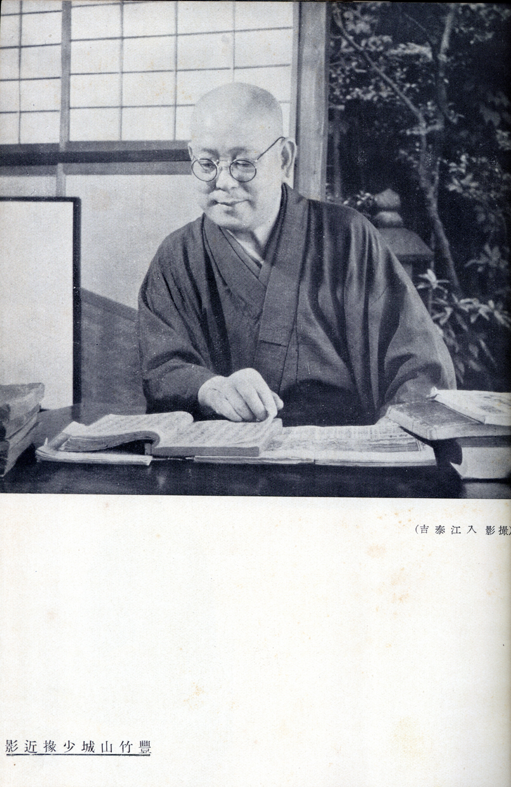 始めて山城師を--当時は古靱太夫であつたが--木屋町の寓居に訪れたのは、師が疎開先の高野口からそこへ引移つて間もない、終戦の年の秋であつた。--竪長に奥深い薄暗い家の中は、なんとなくガランとしてゐて、廊下伝ひに通された、そこだけが格別に明るい、河原に面した小座敷にも、箪笥が一つ、机と風呂先、ほかに調度らしいものは見られなかつた。が、机辺には早くも院本や古番附の類が積み重ねられ、調べ物の筆を執るに日々余念のないらしい気配が窺はれた。それらの院本や番附の多くが、師の寂寥を慰めるために、諸方から寄贈されたものであることを、あとで聞いた。