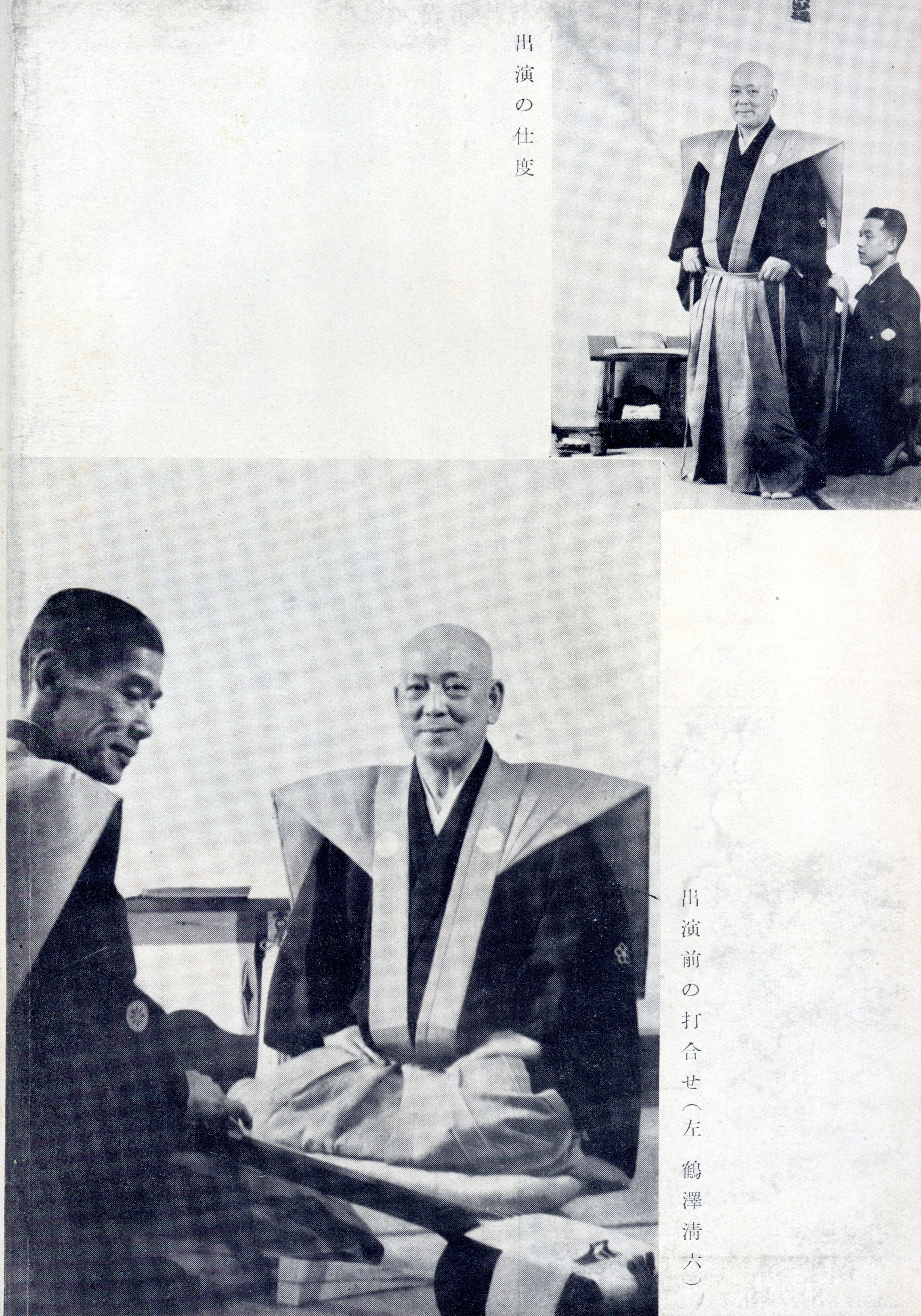 --床がグルリと廻はつてきまると、見台を右へ片寄せ、扇子を前に置き、やゝあとずさりして床に手を突いて、巨躯を納まりよく平伏する裃の姿の、他と掛け離れた輪廓の大きさ。それだけで場を圧するこのやうな芸匠を、次の時代がもう一度持つであらうか。斯道[このみち]の古匠の俤を偲ばせるたゞひとりの人と想へば、師の舞台生活の長からんことを私は念じずにゐられない。